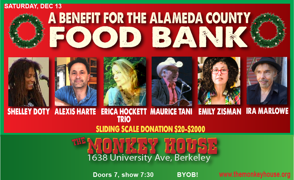This is an exciting lineup and a great cause. I’ve been volunteering for the Alameda County Food Bank through various organizations for over a decade. Things are getting tough out there for a lot of people and the Food Banks are feeling it. Here is one way to provide support for families in need over the holidays. All you have to do is show up and enjoy some really finely crafted, well-honed, local music.